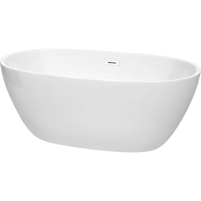 Juno 59 Inch Freestanding Bathtub in White with Shiny White Drain and Overflow Trim