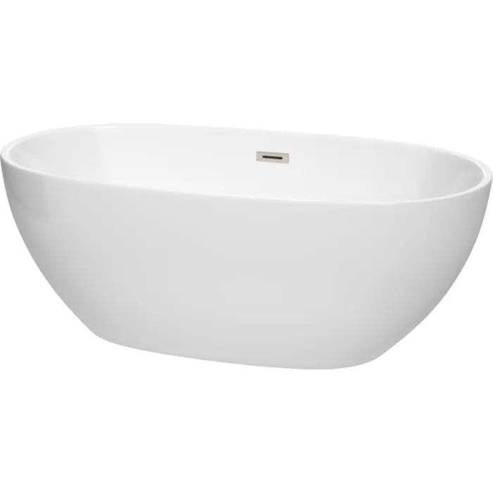 Wyndham Collection 63 Inch Freestanding Bathtub In White With Brushed Nickel Drain And Overflow Trim WCBTK156163BNTRIM