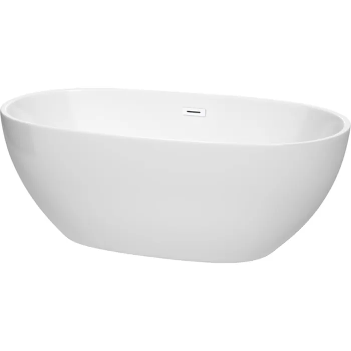 Juno 63 Inch Freestanding Bathtub in White with Shiny White Drain and Overflow Trim