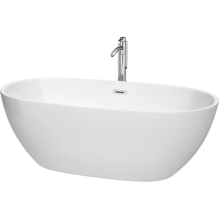 Wyndham Collection 67 Inch Freestanding Bathtub In White With Floor Mounted Faucet, Drain And Overflow Trim In Polished Chrome WCBTK156167ATP11PC