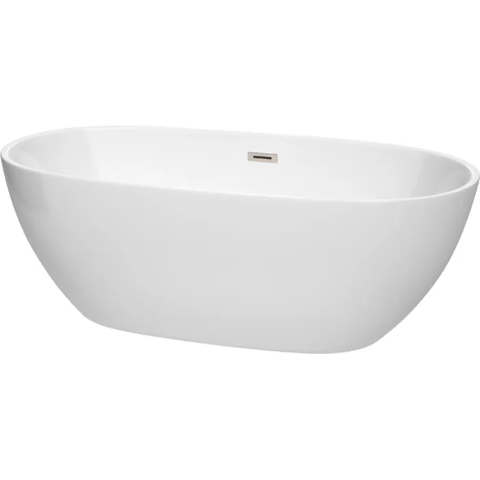 Wyndham Collection 67 Inch Freestanding Bathtub In White With Brushed Nickel Drain And Overflow Trim WCBTK156167BNTRIM