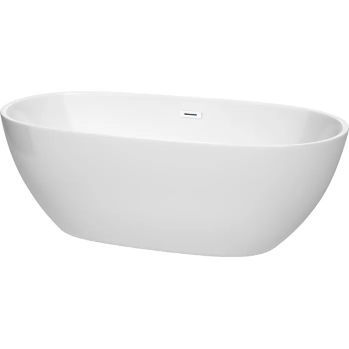 Juno 67 Inch Freestanding Bathtub in White with Shiny White Drain and Overflow Trim