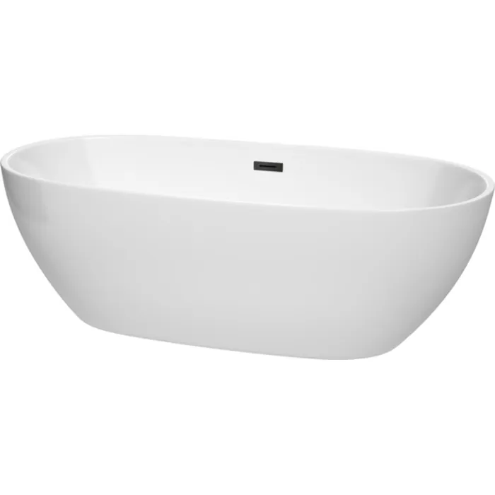Juno 71 Inch Freestanding Bathtub in White with Matte Black Drain and Overflow Trim