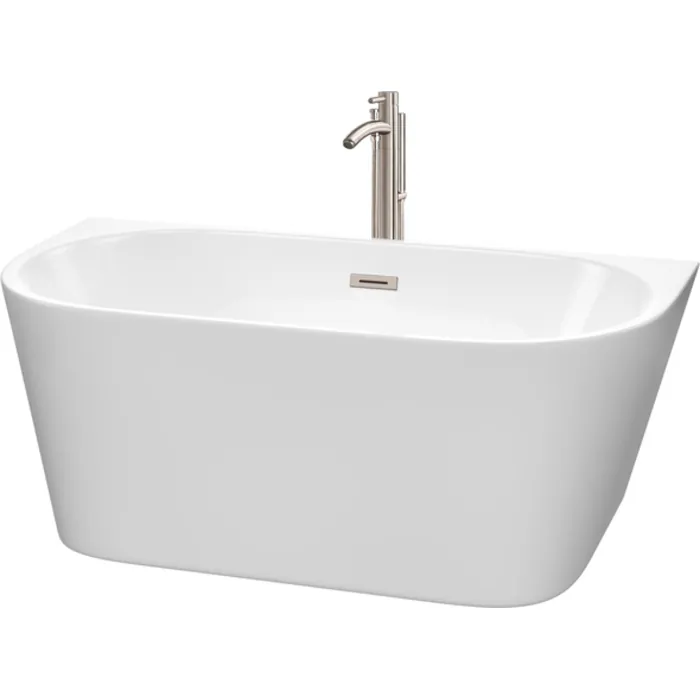 Callie 59 Inch Freestanding Bathtub in White with Floor Mounted Faucet, Drain and Overflow Trim in Brushed Nickel