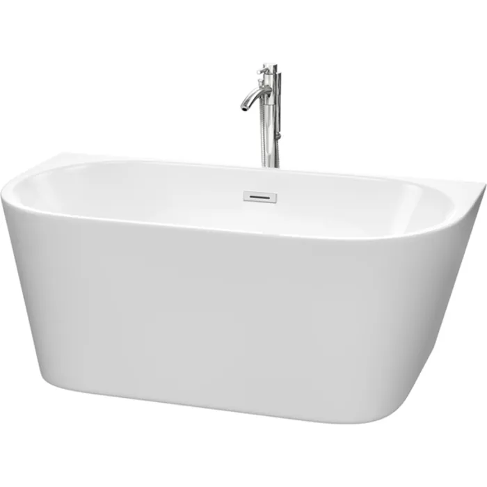 Callie 59 Inch Freestanding Bathtub in White with Floor Mounted Faucet, Drain and Overflow Trim in Polished Chrome
