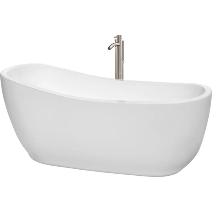 A fresh take on the classic slipper design, the Margaret freestanding tub beckons you to indulge, relax, and unwind as you slip into its warm waters. The tub features a construction that's pleasing to the eye and acrylic material that's warmer to the touch than standard tubs for a seamless blend of aesthetics and functionality. Always ideal for a luxurious soak, this elegant Wyndham Collection tub is perfect for almost any home and bathroom.