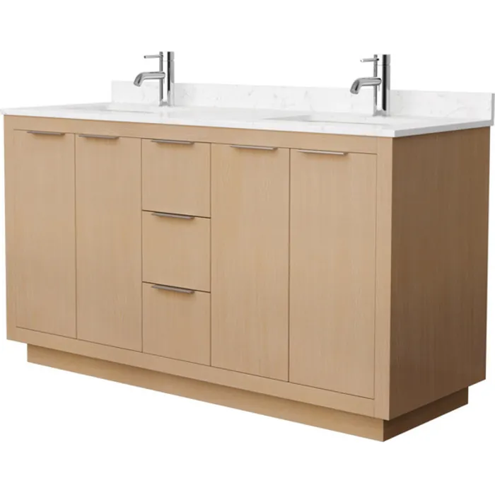 Maroni 60 Inch Double Bathroom Vanity in Light Straw, Light-Vein Carrara Cultured Marble Countertop, Undermount Square Sinks