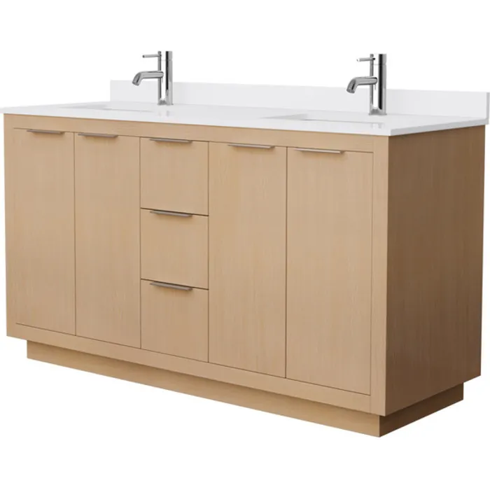Maroni 60 Inch Double Bathroom Vanity in Light Straw, White Cultured Marble Countertop, Undermount Square Sinks