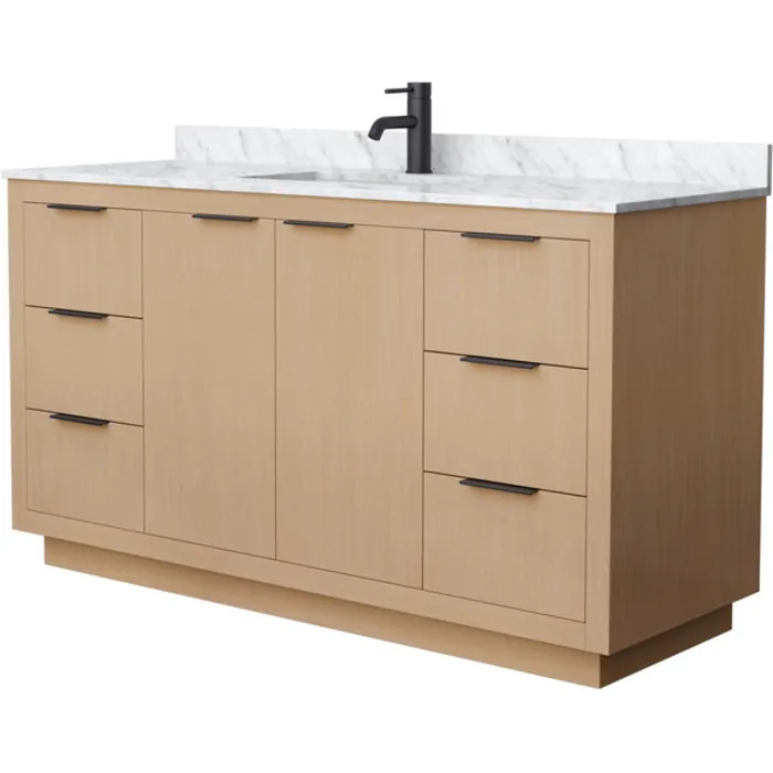 Maroni 60 Inch Single Bathroom Vanity in Light Straw, White Carrara Marble Countertop, Undermount Square Sink, Matte Black Trim