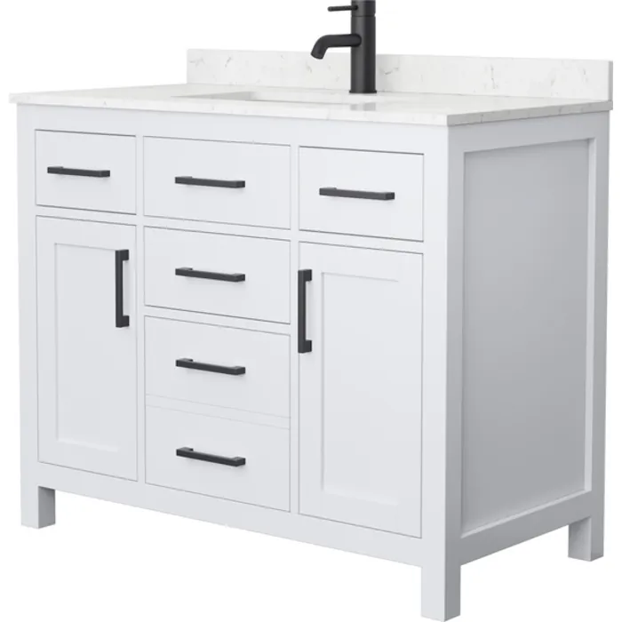 Beckett 42 Inch Single Bathroom Vanity in White, Carrara Cultured Marble Countertop, Undermount Square Sink, Matte Black Trim