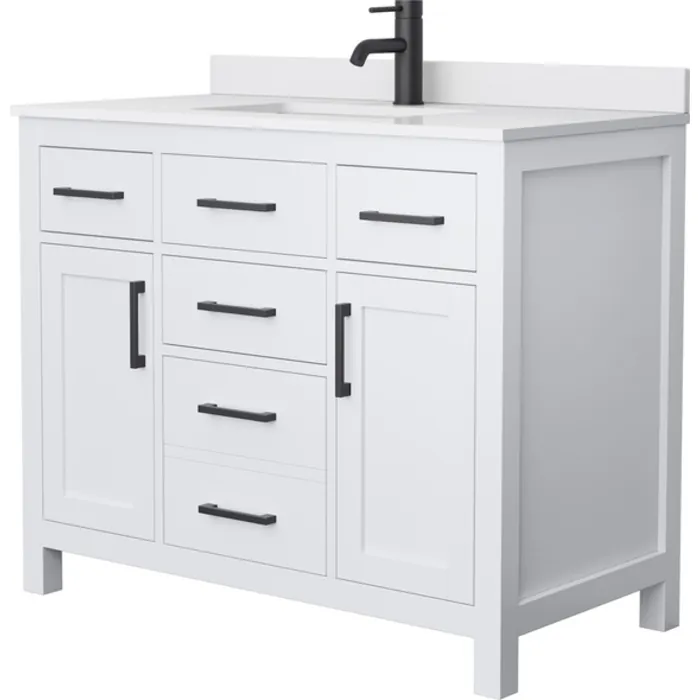 Beckett 42 Inch Single Bathroom Vanity in White, White Cultured Marble Countertop, Undermount Square Sink, Matte Black Trim