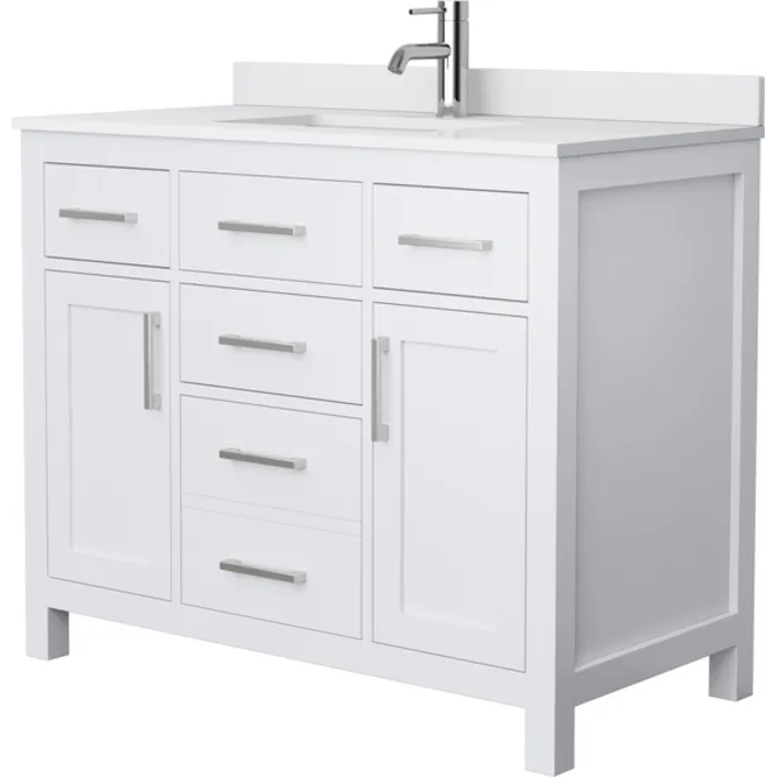 Beckett 42 Inch Single Bathroom Vanity in White, White Cultured Marble Countertop, Undermount Square Sink, No Mirror