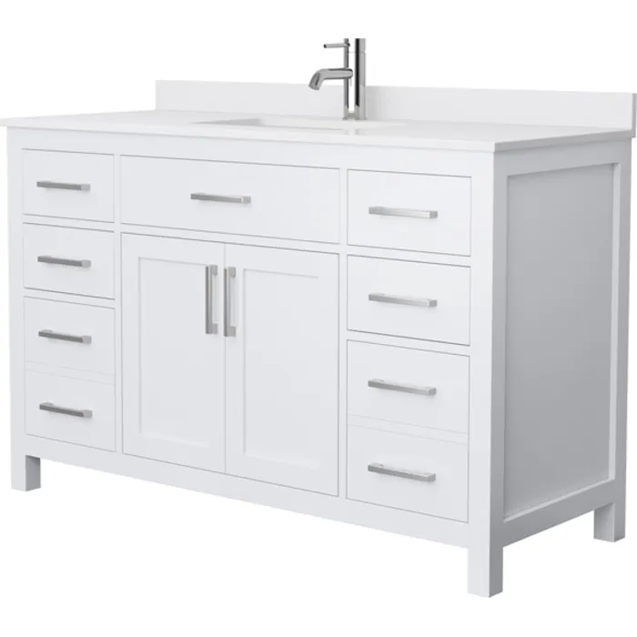 Beckett 54 Inch Single Bathroom Vanity in White, White Cultured Marble Countertop, Undermount Square Sink, No Mirror