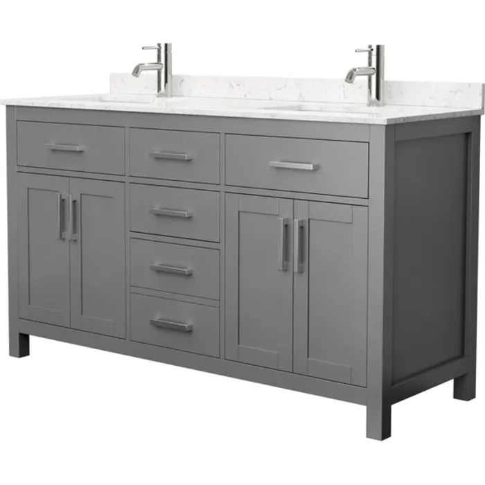 Beckett 60 Inch Double Bathroom Vanity in Dark Gray, Carrara Cultured Marble Countertop, Undermount Square Sinks, No Mirror