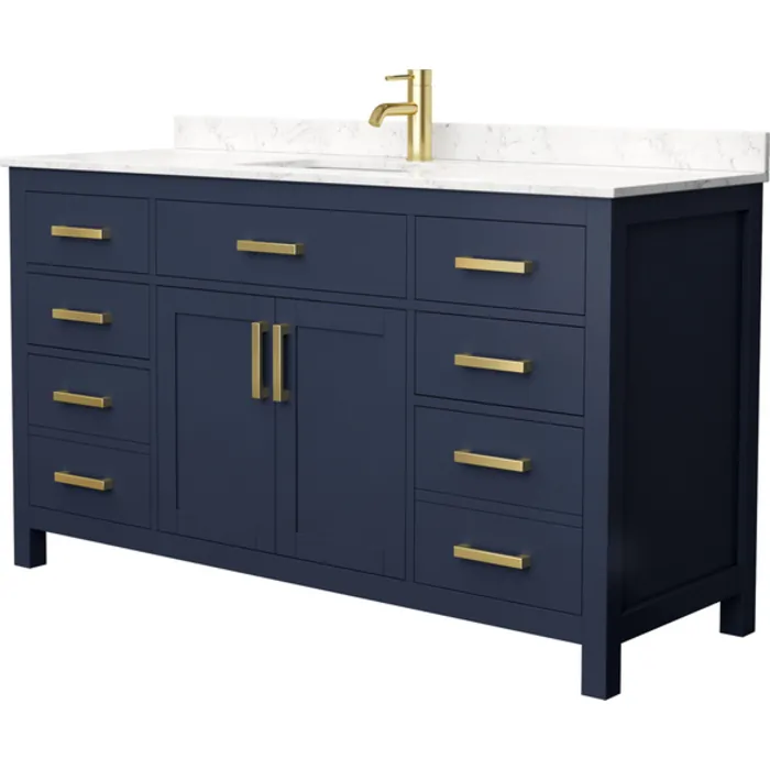 Beckett 60 Inch Single Bathroom Vanity in Dark Blue, Carrara Cultured Marble Countertop, Undermount Square Sink, No Mirror