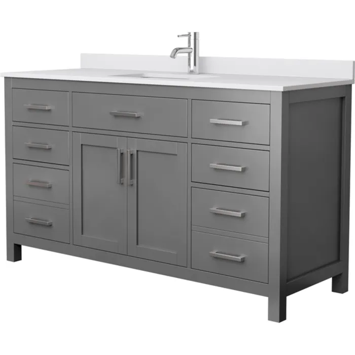 Beckett 60 Inch Single Bathroom Vanity in Dark Gray, White Cultured Marble Countertop, Undermount Square Sink, No Mirror