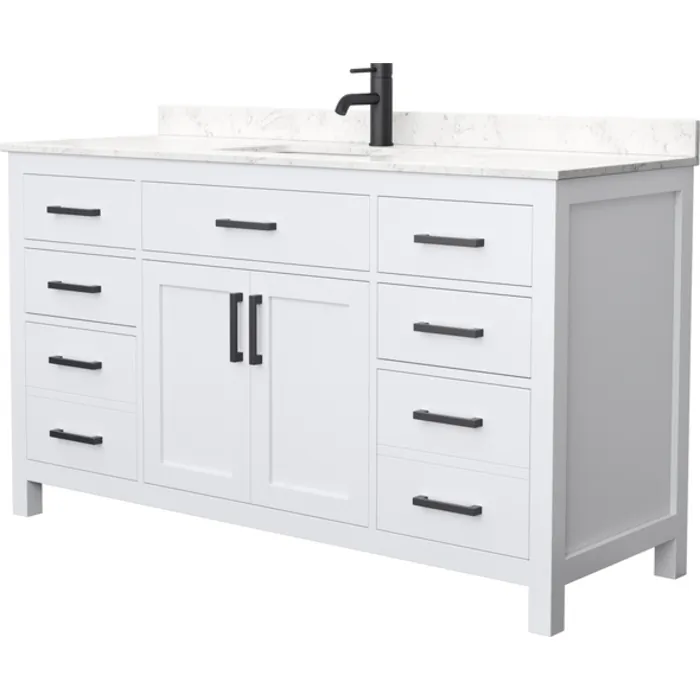 Beckett 60 Inch Single Bathroom Vanity in White, Carrara Cultured Marble Countertop, Undermount Square Sink, Matte Black Trim