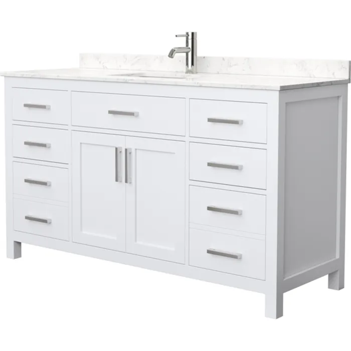 Beckett 60 Inch Single Bathroom Vanity in White, Carrara Cultured Marble Countertop, Undermount Square Sink, No Mirror