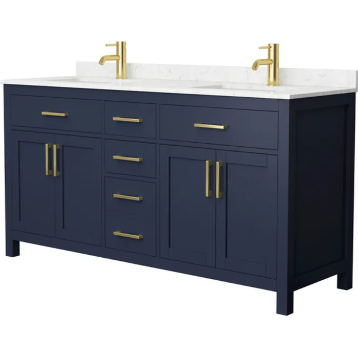 Beckett 66 Inch Double Bathroom Vanity in Dark Blue, Carrara Cultured Marble Countertop, Undermount Square Sinks, No Mirror