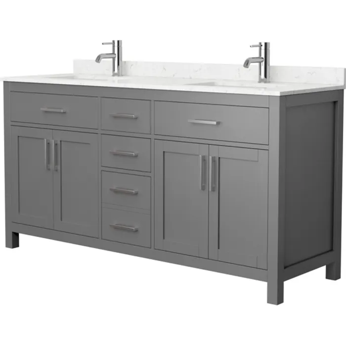 Beckett 66 Inch Double Bathroom Vanity in Dark Gray, Carrara Cultured Marble Countertop, Undermount Square Sinks, No Mirror