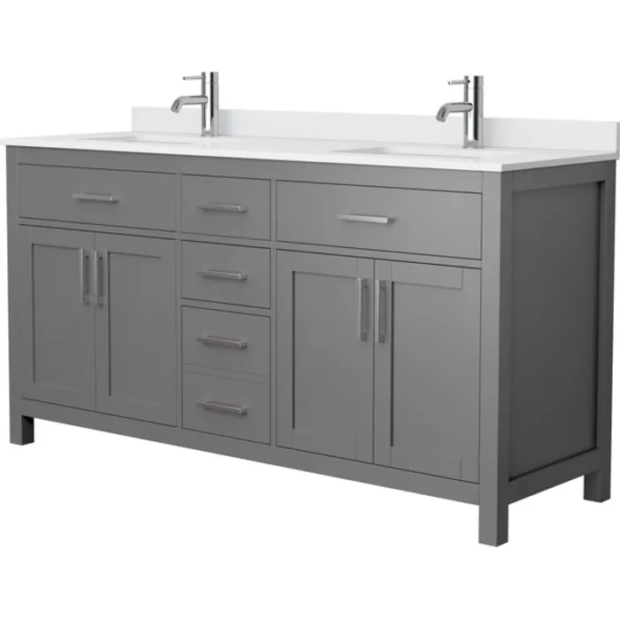 Beckett 66 Inch Double Bathroom Vanity in Dark Gray, White Cultured Marble Countertop, Undermount Square Sinks, No Mirror