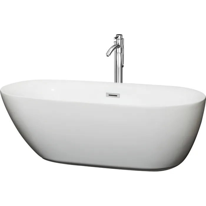 Wyndham Collection WCOBT100065ATP11PC 65 In. Center Drain Soaking Tub In White With Floor Mounted Faucet In Chrome