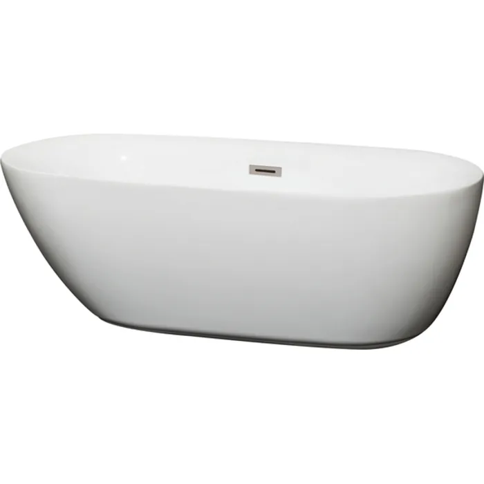 Wyndham Collection WCOBT100065BNTRIM 65 In. Center Drain Soaking Tub In White With Brushed Nickel Drain