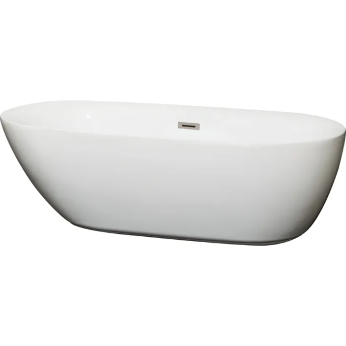 Wyndham Collection WCOBT100071BNTRIM 71 In. Center Drain Soaking Tub In White With Brushed Nickel Drain