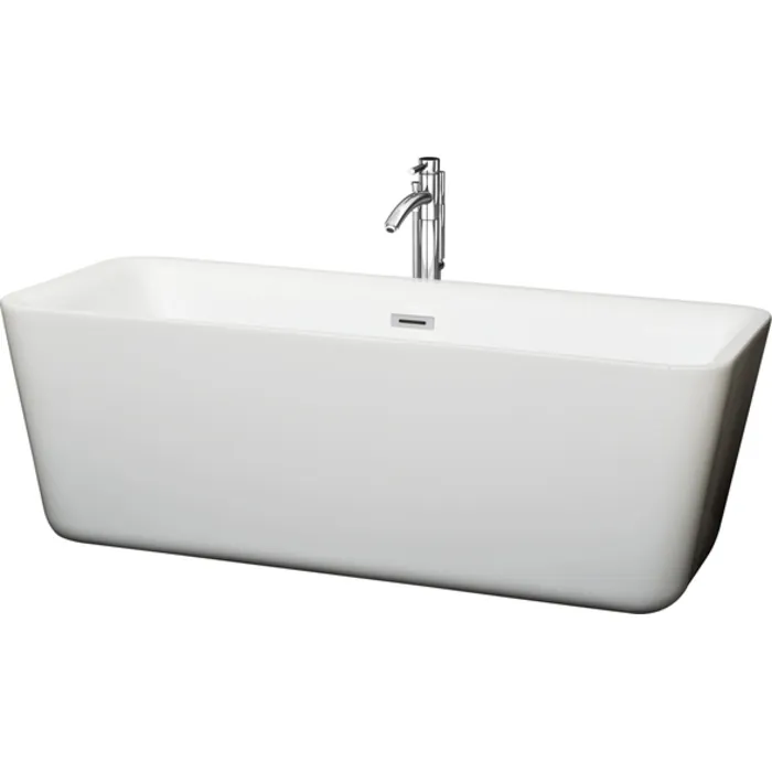 Wyndham Collection WCOBT100169ATP11PC 69 In. Center Drain Soaking Tub In White With Floor Mounted Faucet In Chrome