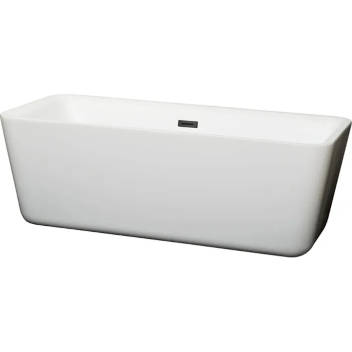 Emily 69 Inch Freestanding Bathtub in White with Matte Black Drain and Overflow Trim