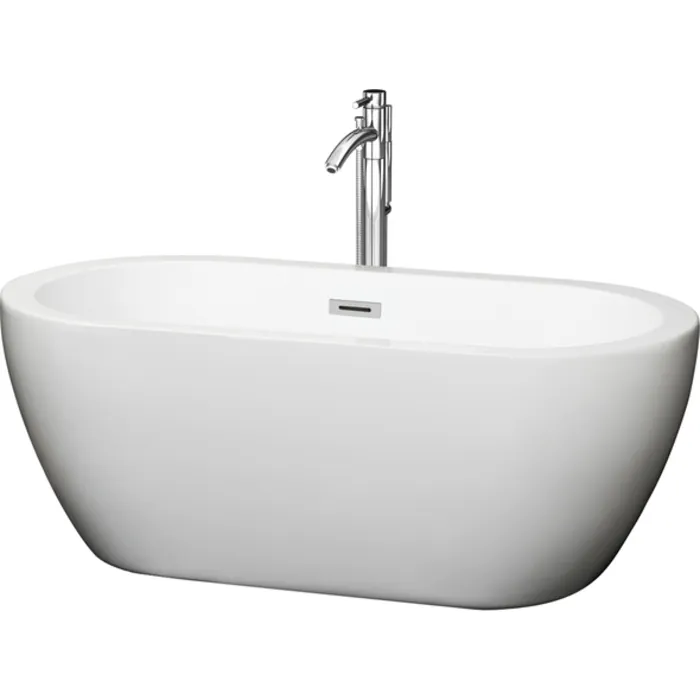 Wyndham Collection WCOBT100260ATP11PC 60 In. Center Drain Soaking Tub In White With Floor Mounted Faucet In Chrome
