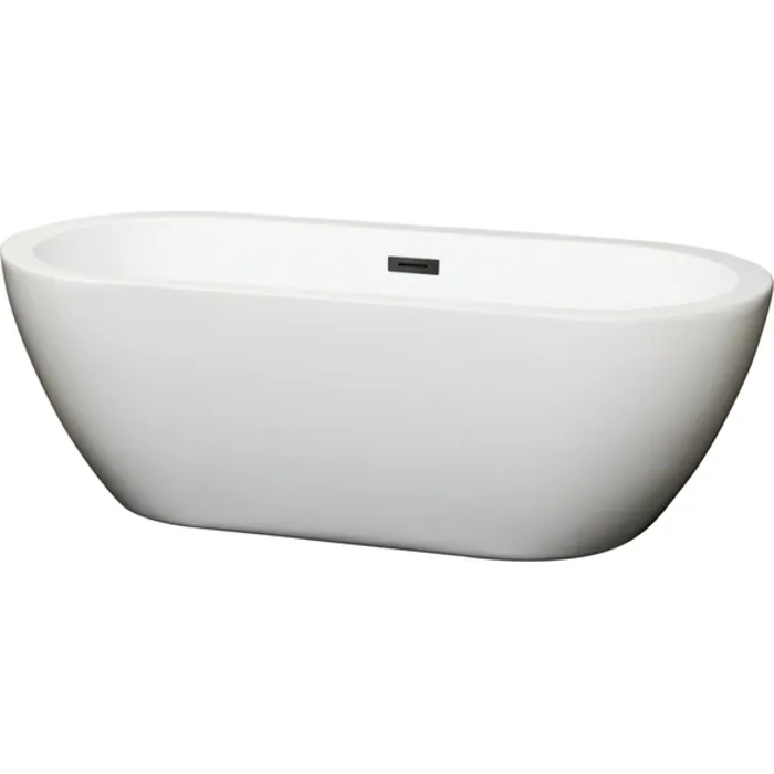 Soho 68 Inch Freestanding Bathtub in White with Matte Black Drain and Overflow Trim