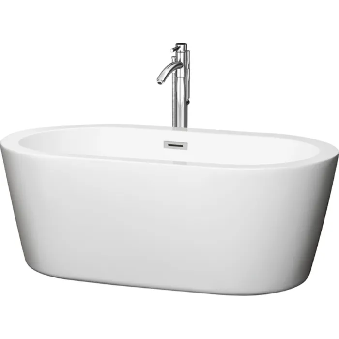 Wyndham Collection WCOBT100360ATP11PC 60 In. Center Drain Soaking Tub In White With Floor Mounted Faucet In Chrome