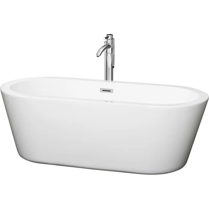 Wyndham Collection WCOBT100367ATP11PC 67 In. Center Drain Soaking Tub In White With Floor Mounted Faucet In Chrome