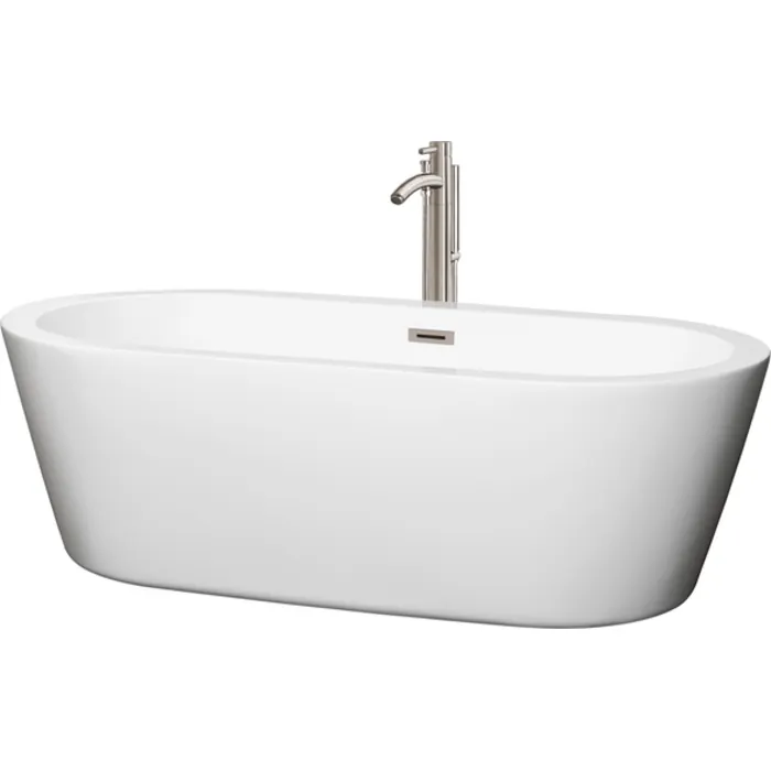 Wyndham Collection WCOBT100371ATP11BN 71 In. Center Drain Soaking Tub In White With Floor Mounted Faucet In Brushed Nickel