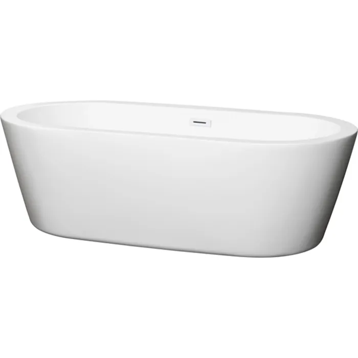 Mermaid 71 Inch Freestanding Bathtub in White with Shiny White Drain and Overflow Trim