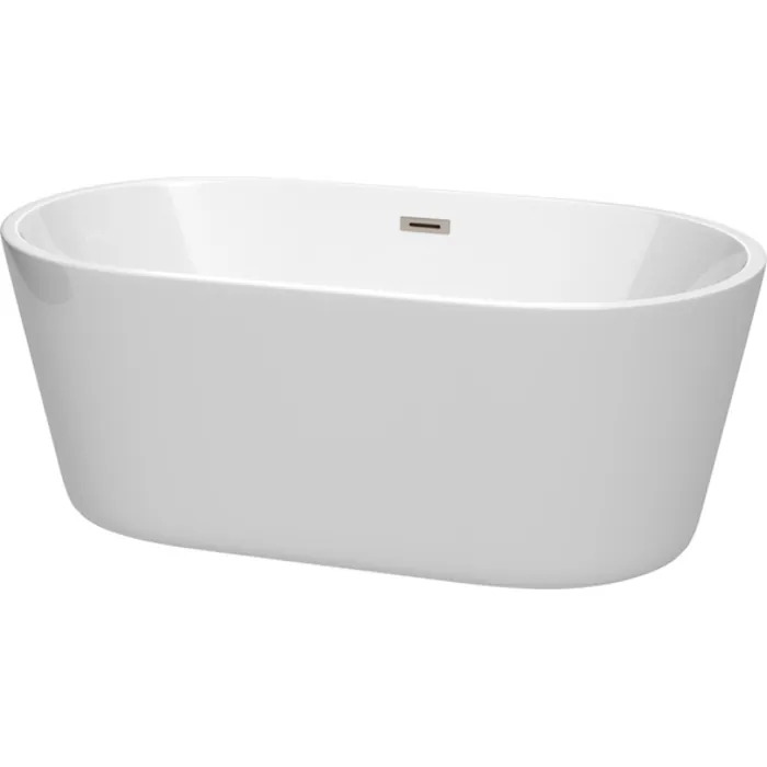 Wyndham Collection 60 Inch Freestanding Bathtub In White With Brushed Nickel Drain And Overflow Trim WCOBT101260BNTRIM