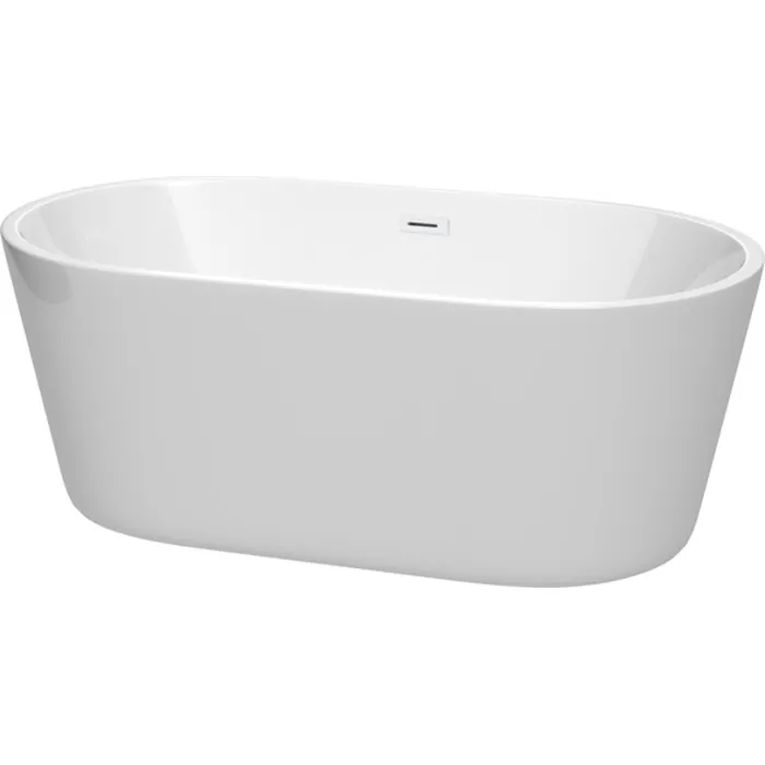 Carissa 60 Inch Freestanding Bathtub in White with Shiny White Drain and Overflow Trim