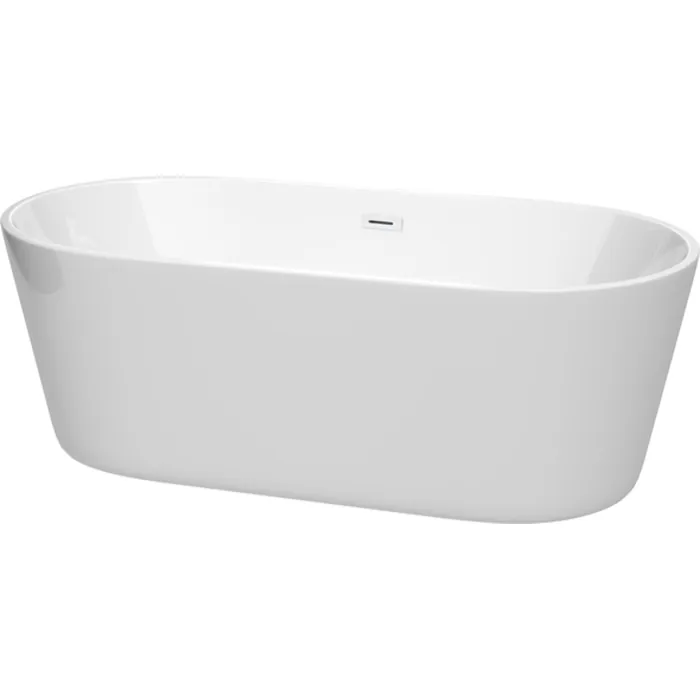 Carissa 67 Inch Freestanding Bathtub in White with Shiny White Drain and Overflow Trim