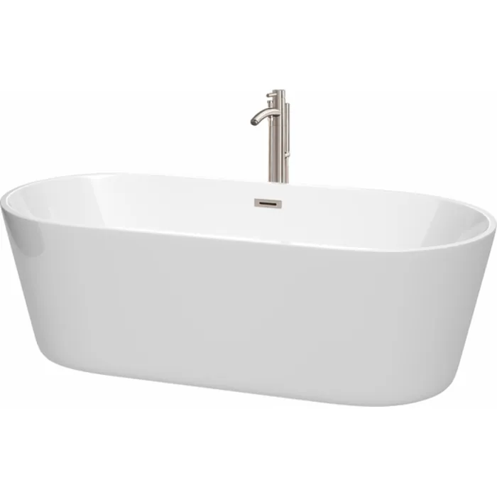 Wyndham Collection 71 Inch Freestanding Bathtub In White With Floor Mounted Faucet, Drain And Overflow Trim In Brushed Nickel WCOBT101271ATP11BN