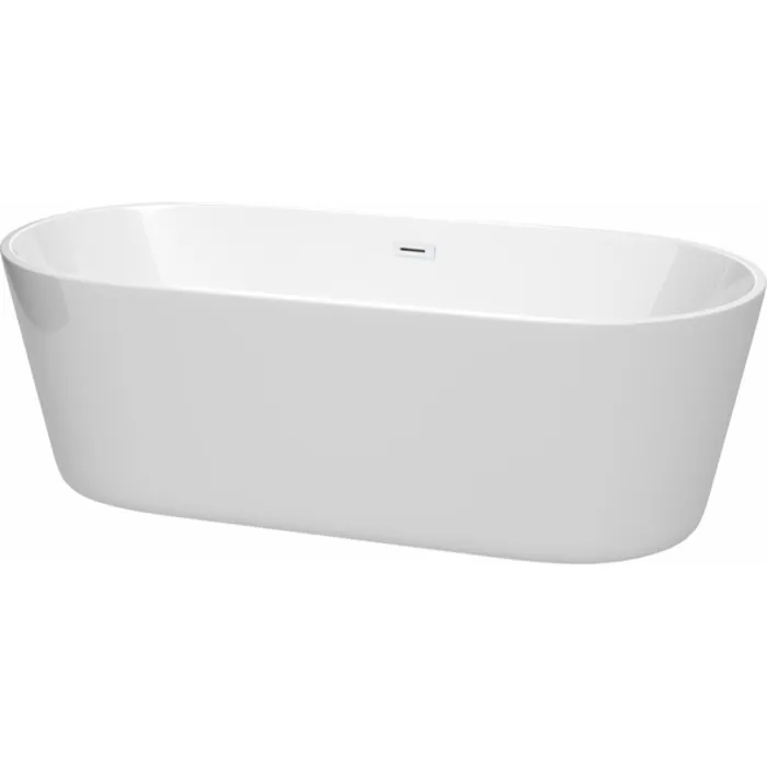 Carissa 71 Inch Freestanding Bathtub in White with Shiny White Drain and Overflow Trim