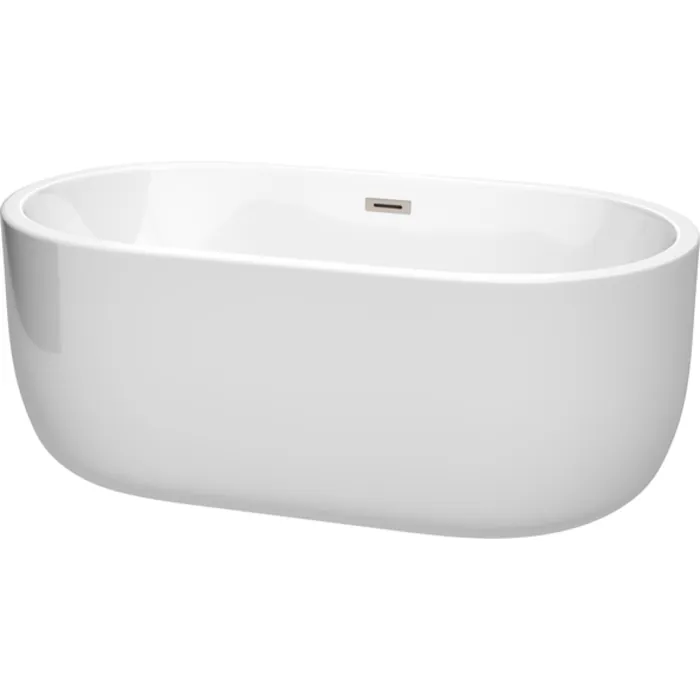 Wyndham Collection 60 Inch Freestanding Bathtub In White With Brushed Nickel Drain And Overflow Trim WCOBT101360BNTRIM
