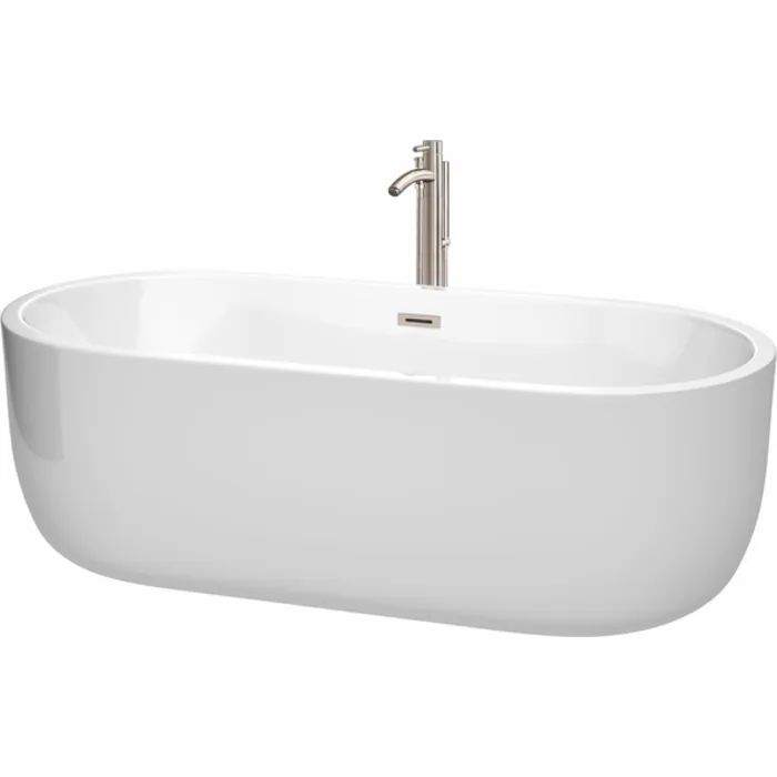 Wyndham Collection 71 Inch Freestanding Bathtub In White With Floor Mounted Faucet, Drain And Overflow Trim In Brushed Nickel WCOBT101371ATP11BN