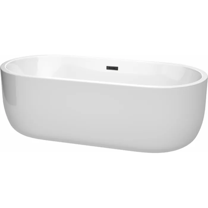 Juliette 71 Inch Freestanding Bathtub in White with Matte Black Drain and Overflow Trim