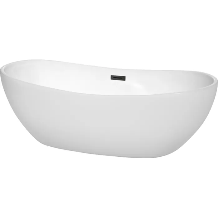 Rebecca 70 Inch Freestanding Bathtub in White with Matte Black Drain and Overflow Trim