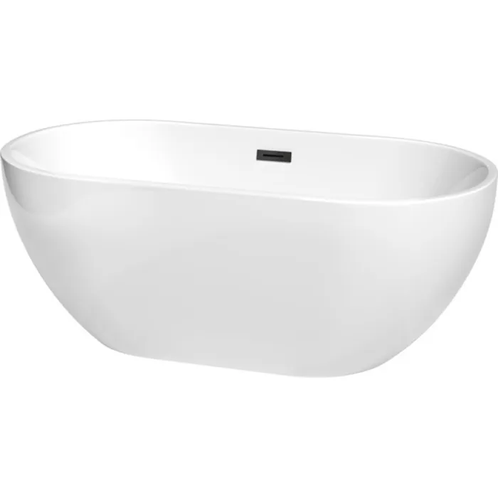 Brooklyn 60 Inch Freestanding Bathtub in White with Matte Black Drain and Overflow Trim