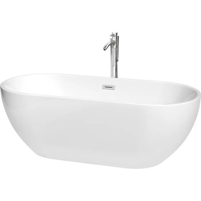 Brooklyn 67 Inch Freestanding Bathtub in White with Floor Mounted Faucet, Drain and Overflow Trim in Polished Chrome
