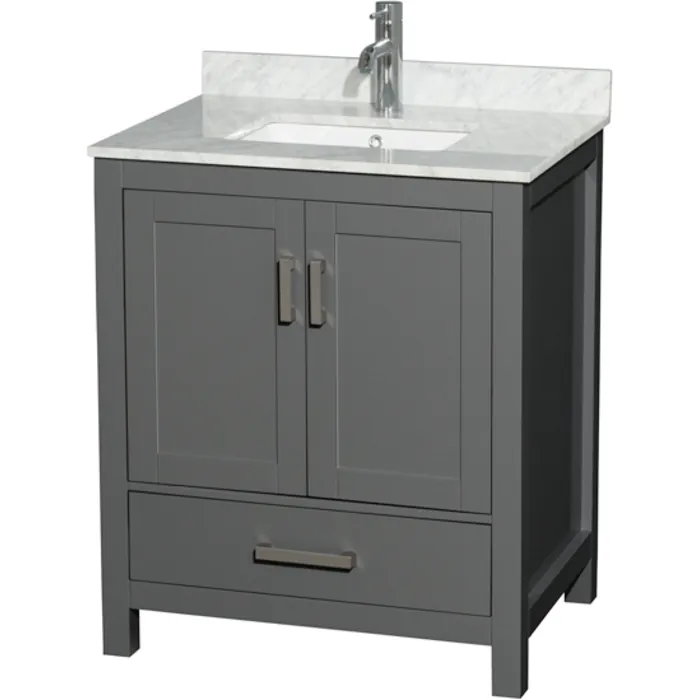 Wyndham Collection 30 Inch Single Bathroom Vanity In Dark Gray, White Carrara Marble Countertop, Undermount Square Sink, And No Mirror WCS141430SKGCMUNSMXX