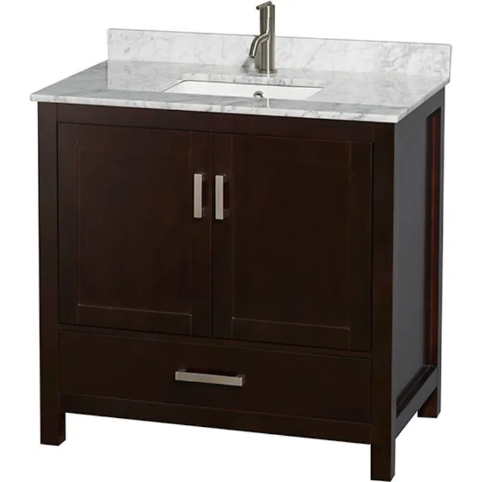 Wyndham Collection WCS141436SESCMUNSMXX 36 In. Single Bathroom Vanity In Espresso, White Carrera Marble Countertop, Undermount Square Sink, And No Mirror