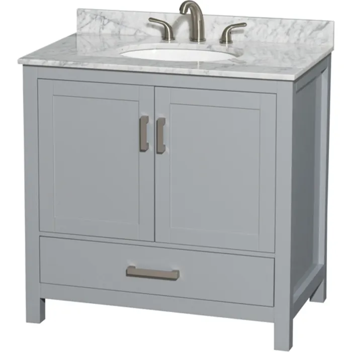 Wyndham Collection 36 Inch Single Bathroom Vanity In Gray, White Carrara Marble Countertop, Undermount Oval Sink, And No Mirror WCS141436SGYCMUNOMXX